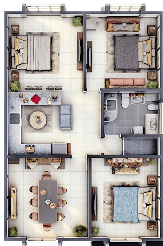 The kitchen is the soul of the home—a place where meals are prepared, stories are shared, and aromas fill the air. It often includes countertops, cabinetry, a stove or oven, and space for both cooking and connection.